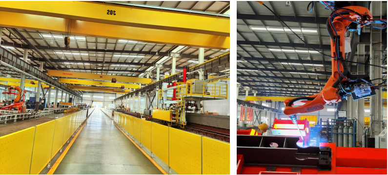 ORITCRANES European-style main girder factory, drawing on advanced European manufacturing experiences, has developed specialized manufacturing process, such as integral web plate cutting, entire stress-relief shot blasting, and pre-assembly procedures. Additionally, the intelligent main girder manufacturing line features automated stiffener and diaphragm welding robots, main girder assembly robot, and intelligent platform. These innovations are pioneering manufacturing techniques for European-style cranes in China.