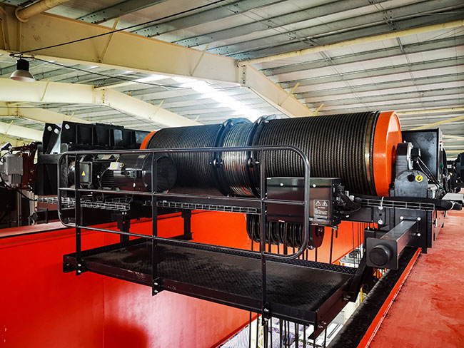 该起重机起重量达到180t,多钩协同翻转重型机床床身,全变频无级调速、自适应大角度斜拉,操作简单、运行平稳,彻底改变了大型重机制造行业危险度极高的床身翻转工艺,彻底消除了重型机床床身翻转安全隐患。获得客户扬力集团好评!
